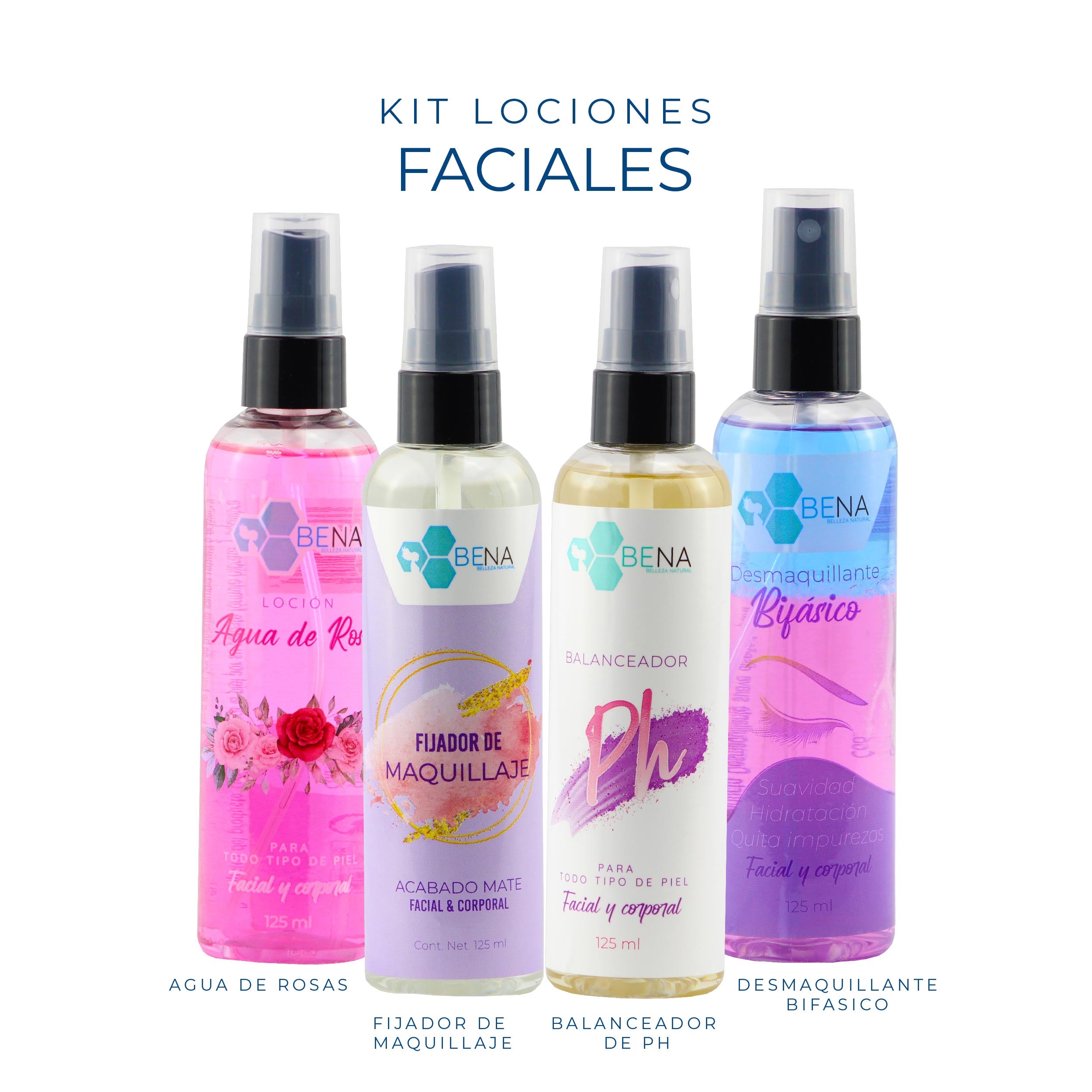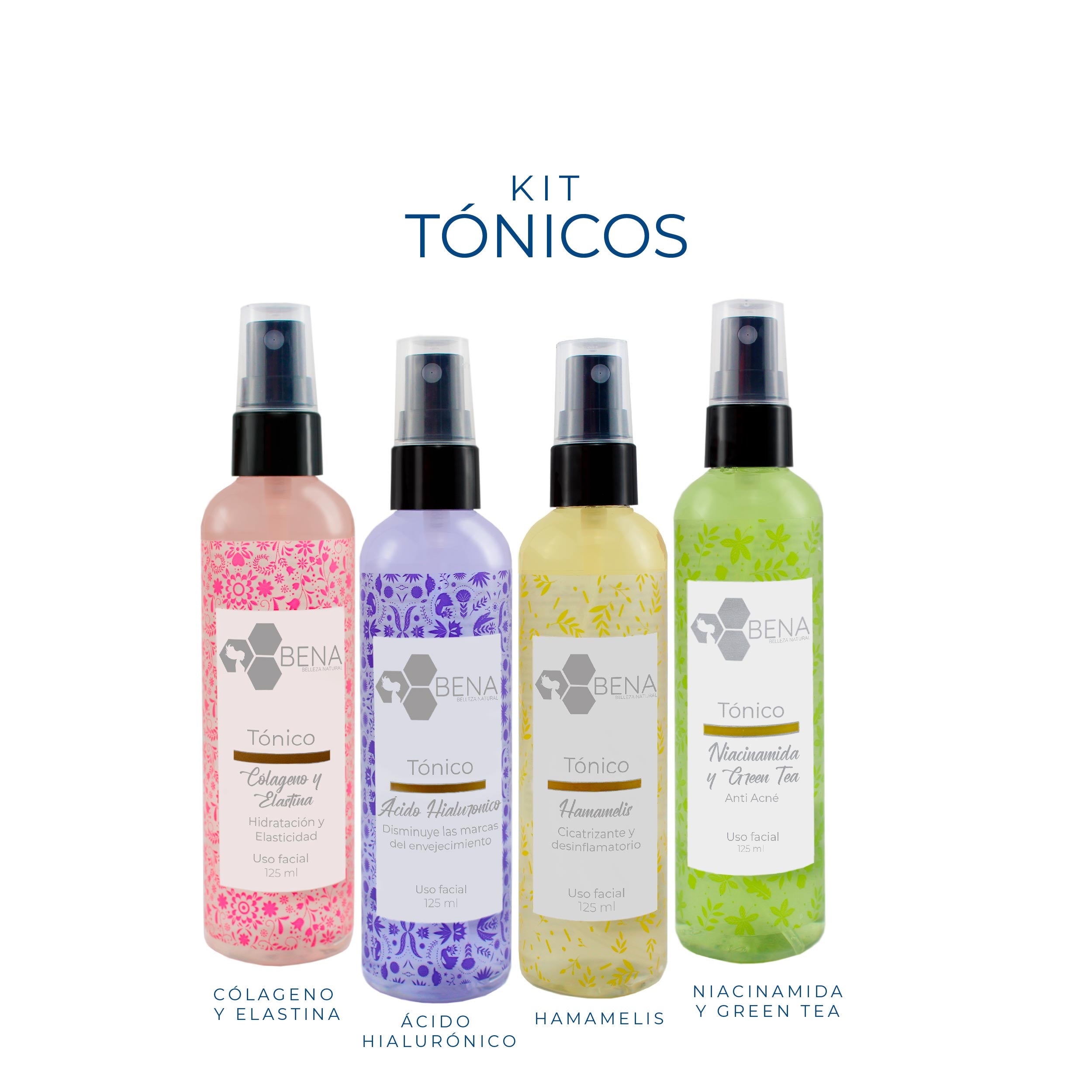 Kit Tonicos Faciales (4 piezas, 125 ml cada uno)